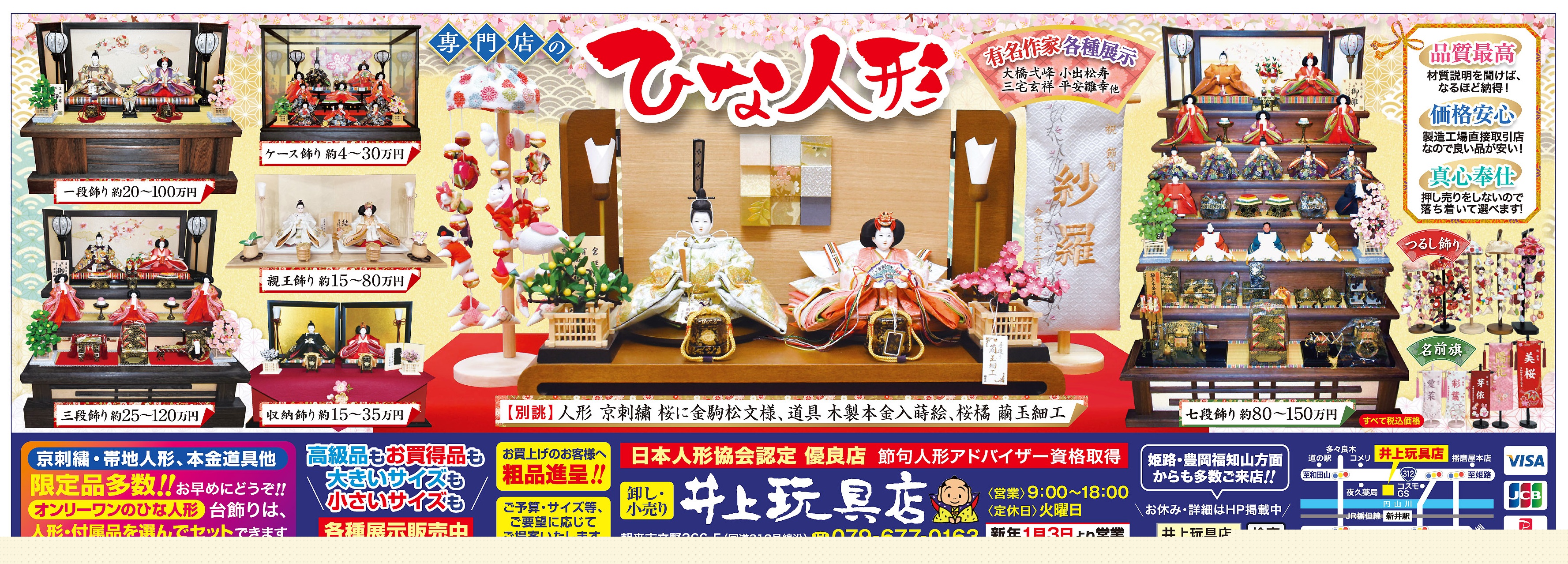 〒679-3424 兵庫県朝来市立野366-5 (有)井上玩具店 電話 079-677-0163 FAX 079-677-1558